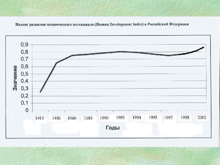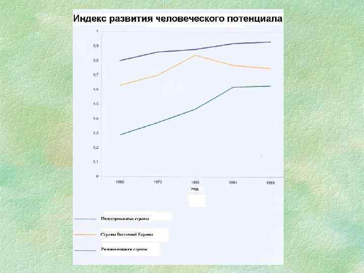 индекс развития человеческого фактора § ожидаемая продолжительность жизни при рождении; § уровень жизни, измеряемый на базе реального валового внутреннего продукта на душу населения; § достигнутый уровень образованности, измеряемый суммой индекса грамотности взрослого населения (вес в две трети) и доли учащихся, поступивших в учебные заведения