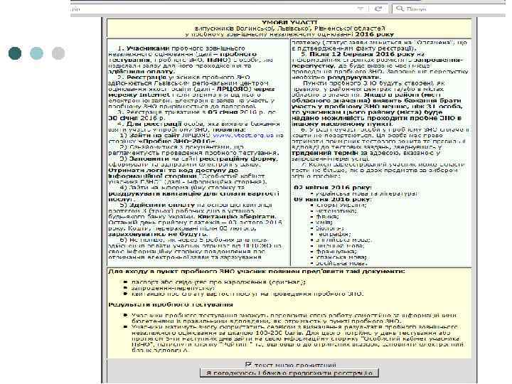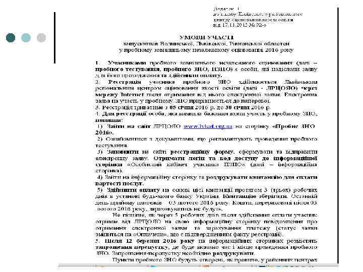 ПРАВИЛА реєстрації 1. Зайти на сайт ЛРЦОЯО www. lvtest. org. ua на сторінку “Пробне ЗНО-2016” 2. Вибрати кнопку “Зареєструватися” 3. Ознайомитися з документами, що регламентують проведення пробного тестування