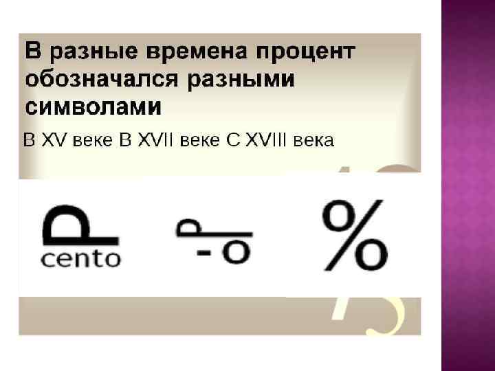 Слово «процент» происходит от латинского слова pro centum, что буквально переводится «за сотню» , или «со ста» . Процентами очень удобно пользоваться на практике, так как они выражают части целых чисел в одних и тех же сотых долях. Это дает возможность упрощать расчеты и легко сравнивать части между собой и с целыми.