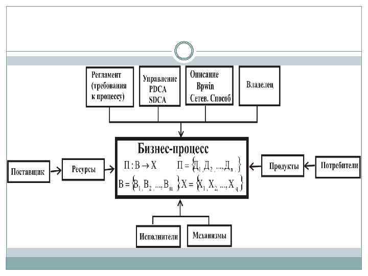 Входы процесса – входные объекты (сырье, продукция, комплектация, информация или услуга), которые преобразуются в Выходы процесса, в ходе выполнения Процесса. Часто Входы одного процесса являются выходами другого; Выходы процесса – продукция, информация или услуга ради которой существует процесс. Модель процессов организации – объединение взаимосвязанных и взаимосогласованных процессов организации в единую систему.