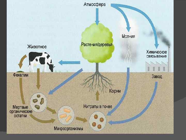 Денитрификация – процесс восстановления нитритов и нитратов денитрифицирующими бактериями до свободного азота. Этот процесс вреден для сельского хозяйства, так как приводит к частичному выносу (приблизительно 20%) азота из почвы. Нитраты в почве расходуются весьма интенсивно. Часть их потребляется в процессе питания растений и самих микроорганизмов, часть вымывается из почвы, а некоторые количество нитратов восстанавливается до газообразной формы азота (NO, N 2) в процессе денитрификации.