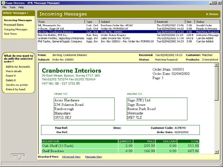 Roadmap Core - e. Commerce • Transaction Mail Enablement – EDI/XML already there and most of the message sets needed • Sales Quotations in development – Line 50 enabled now – 30 -40% of your customers and suppliers use a Sage Solution