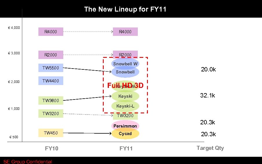 The New Lineup for FY 11 € 4, 000 € 3, 000 R 4000 R 2000 TW 5500 € 2, 000 TW 4400 TW 3600 Snowbell W Snowbell Full HDW 3 D Keyaki 32. 1 k Keyaki-L € 1, 000 TW 3200 Persimmon TW 450 Cycad FY 10 € 500 20. 0 k FY 11 SE Group Confidential 20. 3 k Target Qty