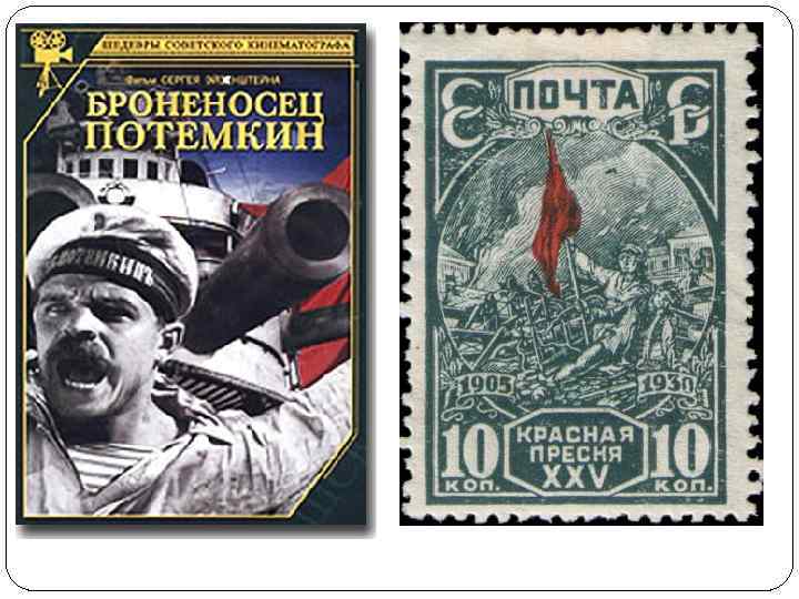 История product placement (СССР РФ) • Характерен больше идеологический, чем коммерческий product placement - 1925 год фильм «Броненосец Потемкин» Сергей Эйзенштейн продвигая идеологические ценности СССР и КПСС вручную на монтажном столе раскрасил красным цветом советский флаг на черно-белой пленке фильма; • Советские комедии как инструмент продвижения гос. заказов;