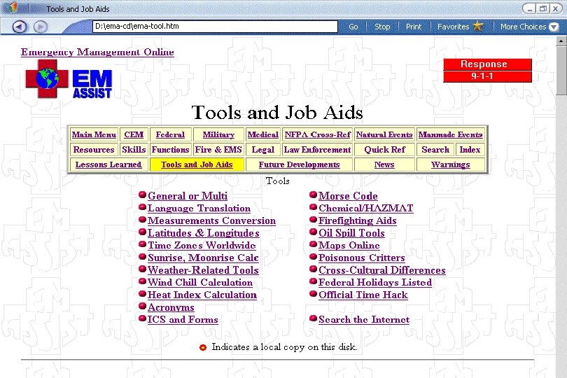 Selected Tools Contained in the Tools Area ä ä Measure and conversion Language translators HAZMAT databases Cross-cultural differences ä ä Online maps Incident Command System Firefighting Weather calculators