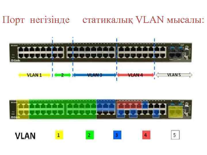 а) порт базасындағы VLAN Порт базасындағы VLAN-ды қолдану кезінде порт белгілі бір VLAN-ға беріледі, ол осы портқа қандай қолданушы не компьютер қосылғанына тәуелді емес. Бұл дегеніміз осы портқа қосылған барлық қолданушы бір VLAN-ның мүшесі болады. Порттар конфигурациясы статикалық және тек қолмен өзгере алады.