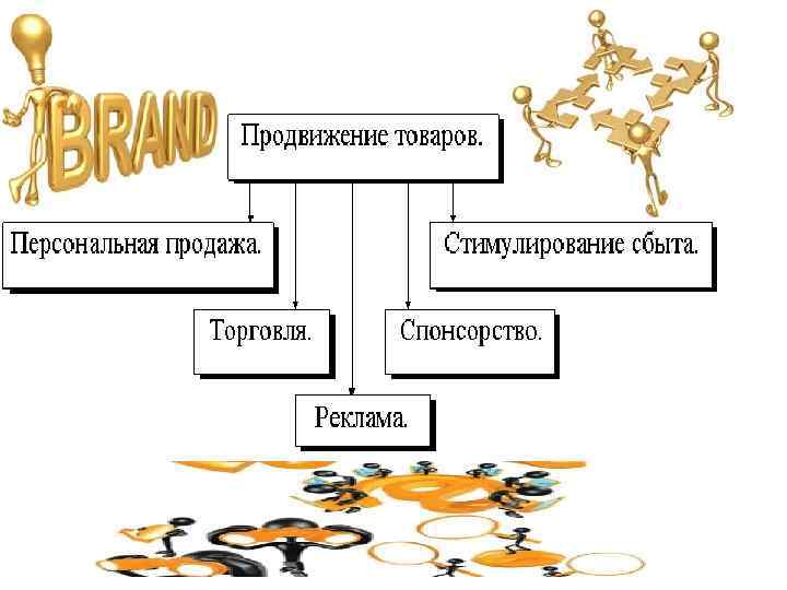 ТОРГОВЛЯ. Включается в “структуру продвижения” и является способом, которым продукт представляется к продаже (включая упаковку, демонстрационные витрины и т. д. ).