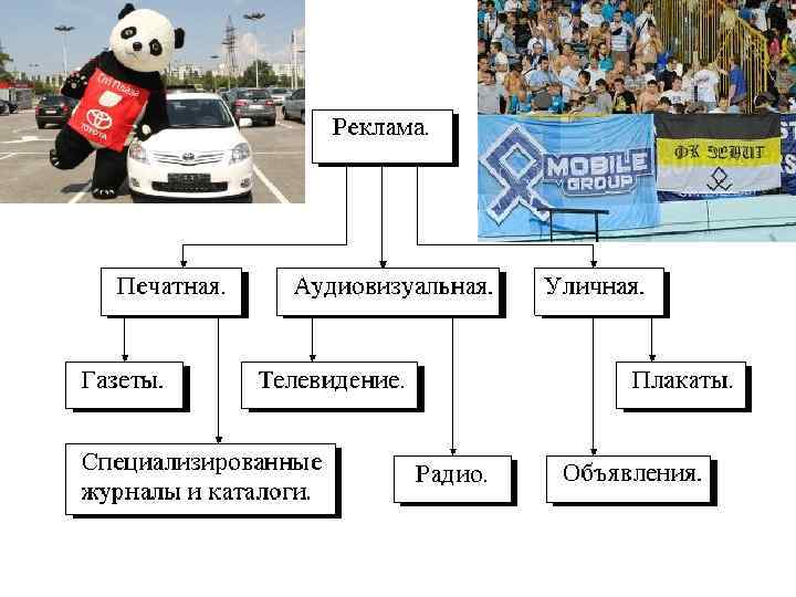 РЕКЛАМА В СРЕДСТВАХ МАССОВОЙ ИНФОРМАЦИИ. Реклама неперсоонированное сообщение, направленное на целевую аудиторию при помощи различных средств массовой информации для представления и продвижения продукции, услуг и идей, затраты на которое несет идентифицируемый спонсор.