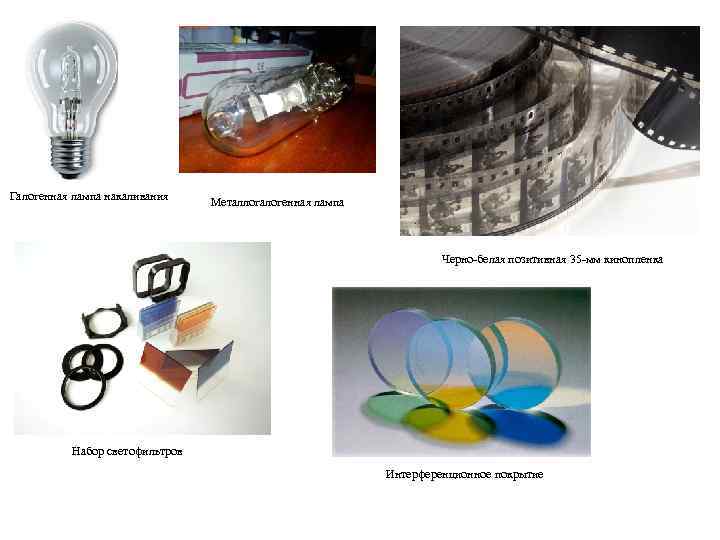 Галогенная лампа накаливания Металлогалогенная лампа Черно-белая позитивная 35 -мм кинопленка Набор светофильтров Интерференционное покрытие
