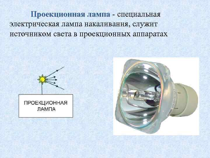 Проекционная лампа - специальная электрическая лампа накаливания, служит источником света в проекционных аппаратах