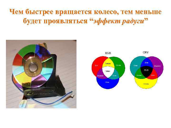 Чем быстрее вращается колесо, тем меньше будет проявляться “эффект радуги”