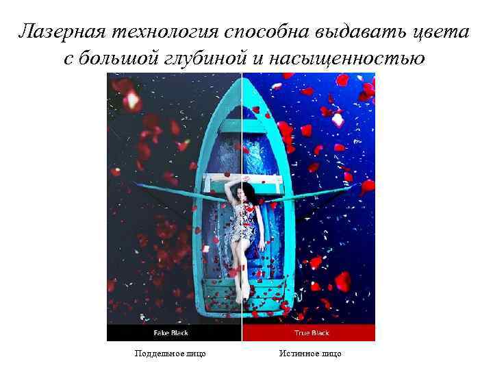 Лазерная технология способна выдавать цвета с большой глубиной и насыщенностью Поддельное лицо Истинное лицо