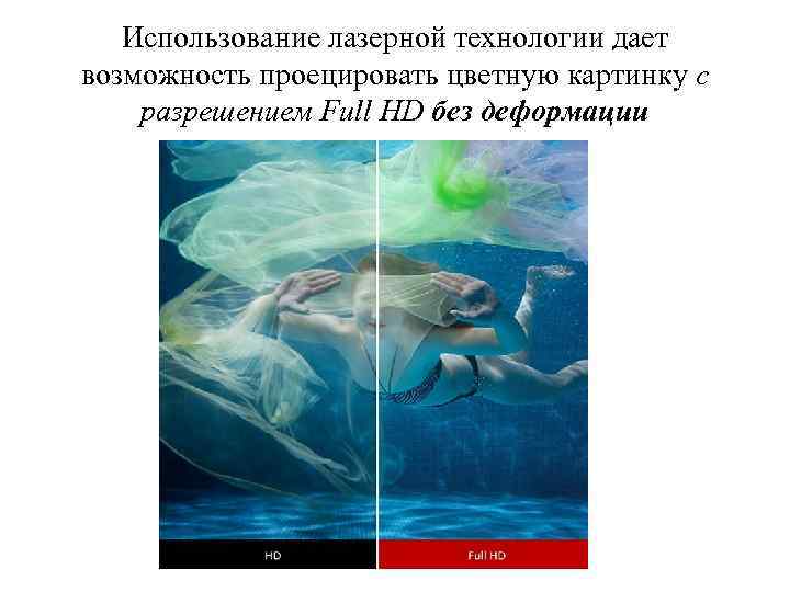 Использование лазерной технологии дает возможность проецировать цветную картинку с разрешением Full HD без деформации