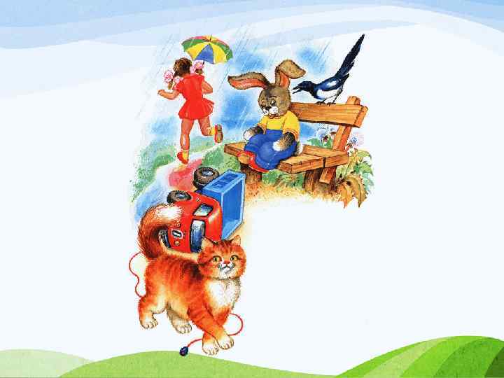 Зайка Зайку бросила хозяйка, Под дождём остался зайка, Со скамейки слезть не мог, Весь до ниточки промок.