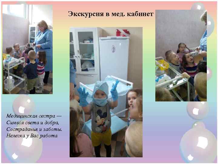 Экскурсия в мед. кабинет Медицинская сестра — Символ света и добра, Состраданья и заботы. Нелегка у Вас работа