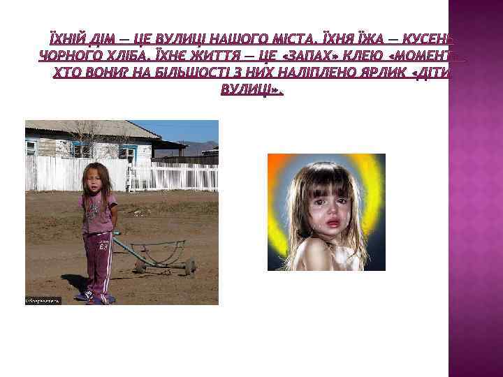 ПРОЕКТ НА ТЕМУ: «ДІТИ ВУЛИЦІ — РОЗПЛАТА ЗА БАЙДУЖІСТЬ» Важке дитинство ніколи не закінчується