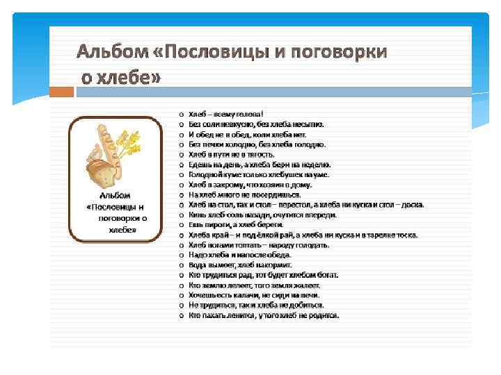 Беседы: «Как хлеб на стол пришел» ; «Какой бывает хлеб» ; «Как испечь хлеб дома» ; «Берегите хлеб» .
