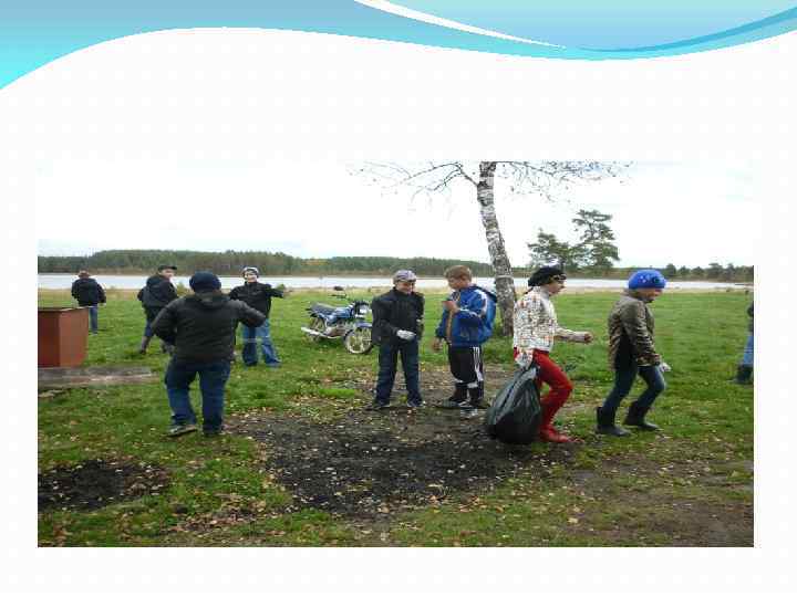 Актуальность данного проекта Наша земля — уникальная планета во Вселенной, единственный наш дом. Экология Земли с каждым днем страдает всё сильнее. Строятся новые заводы, появляется все больше автомобилей на дорогах, запускаются ракеты и спутники, а также большое влияние на загрязнение водных ресурсов оказывает непосредственно сам человек. Многие водные млекопитающие и рыбы давно находятся под угрозой исчезновения из-за загрязнения водоемов, ведь многие автолюбители моют свои машины(Приложение № 1) в природных источниках, используя бытовую химию, разводят костры по побережью озер, оставляют за собой большие свалки мусора, в лучшем случае оставляя на берегу, а в худшем выбрасывают прямо в воду. Если охарактеризовать нынешнее состояние окружающей нас природы и сравнить с тем, что мы хотели бы иметь, то думаю, что вывод будет таким: «То, что мы имеем, явно отличается от того, что мы хотим» . А если каждый заглянет в себя и вспомнит, сколько вреда он причинил природе, а после этого постарается быть мудрее и заботливее, то наша зелёная планета просуществует на сотни лет дольше вместе с нашими потомками. Многие учащиеся нашей школы заглянули в себя и теперь на протяжении многих лет стараются сделать наш посёлок чище и наряднее, принимая участие в различных экологических акциях: «Поможем озерам» , «Чистый берег» (Приложение № 2), «Посади дерево» , «Покорми птиц зимой» , «Раз листочек, два листочек» и многих других.