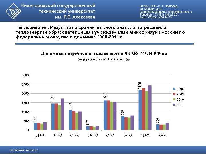 Теплоэнергия. Результаты сравнительного анализа потребления теплоэнергии образовательными учреждениями Минобрнауки России по федеральным округам в динамике 2008 -2011 г.