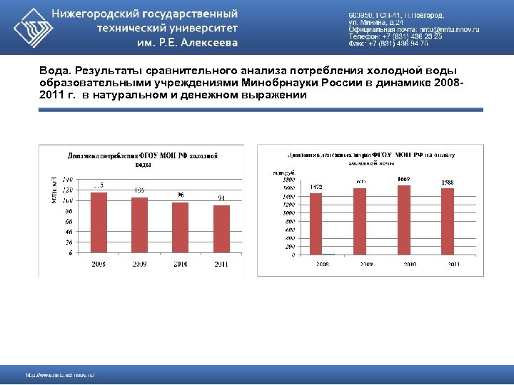 Вода. Результаты сравнительного анализа потребления холодной воды образовательными учреждениями Минобрнауки России в динамике 20082011 г. в натуральном и денежном выражении