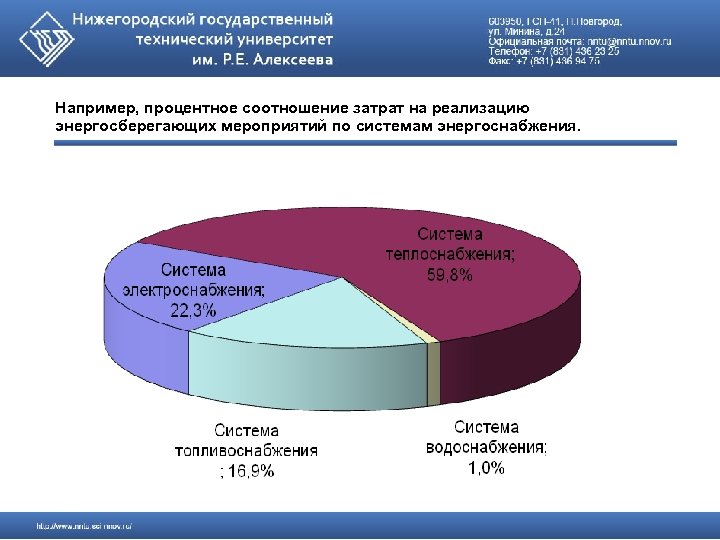 Например, процентное соотношение затрат на реализацию энергосберегающих мероприятий по системам энергоснабжения.