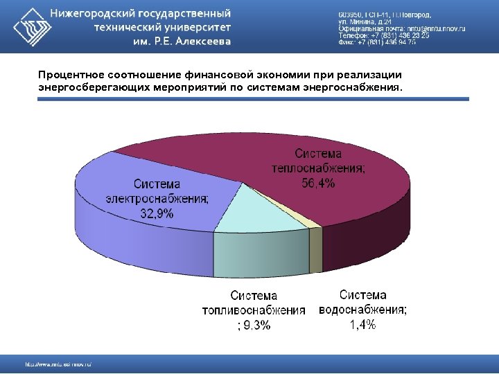 Процентное соотношение финансовой экономии при реализации энергосберегающих мероприятий по системам энергоснабжения.