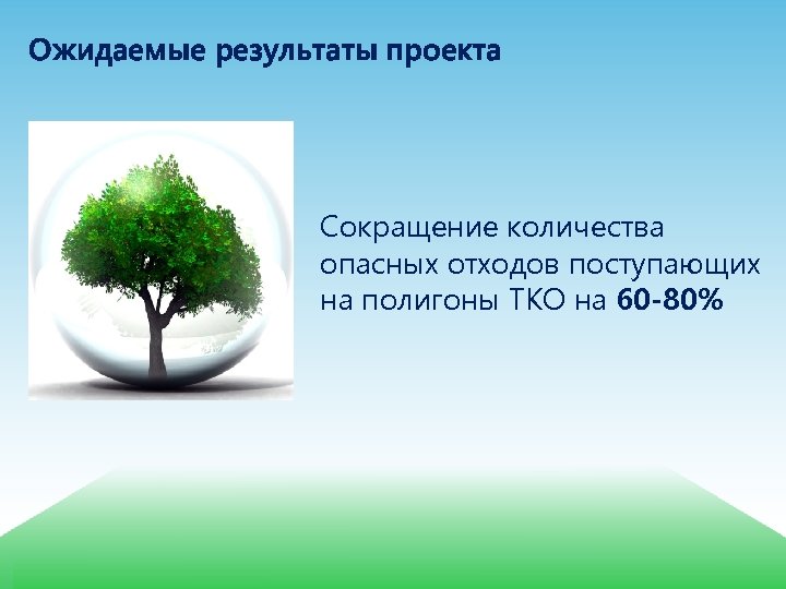 Ожидаемые результаты проекта Сокращение количества опасных отходов поступающих на полигоны ТКО на 60 -80%