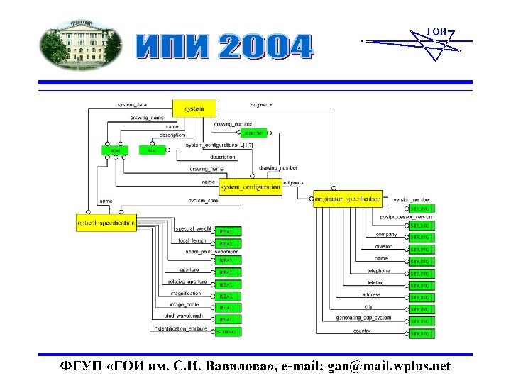 Проект стандарта обменного файла для описания оптических систем и его использование при проектировании и информационном сопровождении изделий д. т. н. Ган М. А. , Ган Я. М. , Ларионов С. А. , Чертков А. С. Е-mail: gan@mail. wplus. net ФГУП ВНЦ «ГОИ им. С. И. Вавилова» Санкт-Петербург