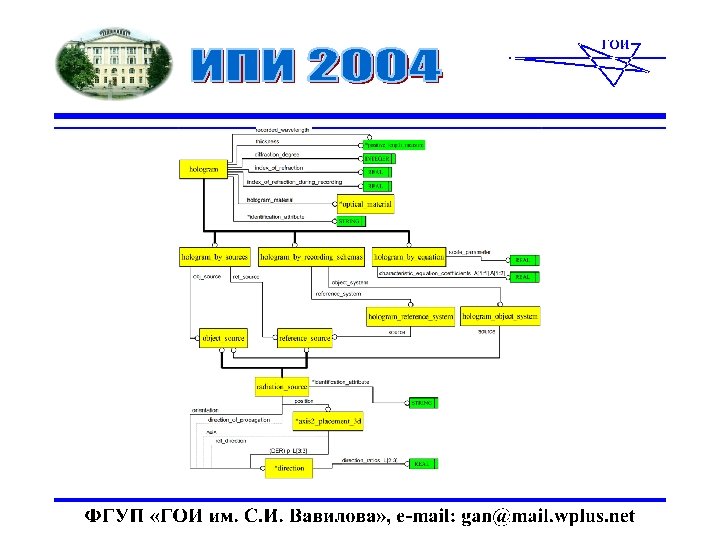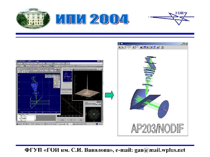 Работы ФГУП ГОИ в области ИПИ - технологий • КНИР «Сквозняк» , «Схемотехника новых оптических систем с повышенными характеристиками …» , 1994 -1998 гг. , заказчик - СПП при Президиуме РАН • НИР «Интеграл-ОКО» , «Создание основ оптических CALS-технологий …» , 2001 -2003 гг. , заказчик - УНВ МО РФ