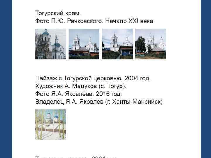 Отреставрированные старинные храмы вновь служат православным людям (в п. Тогур, с. Молчаново, Петухово, Спасское, Зоркальцево…. ).