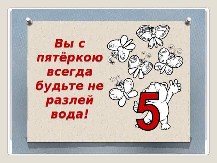 Как написать цифру 5 ? Как красива цифра пять! Будем мы ее писать. Вертикальный ставь штришок, От него веди кружок, Сверху - хвостик небольшой. Цифра пять перед тобой! Научись её писать, Чтоб пятёрки получать!