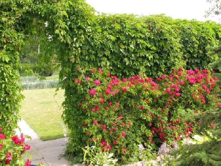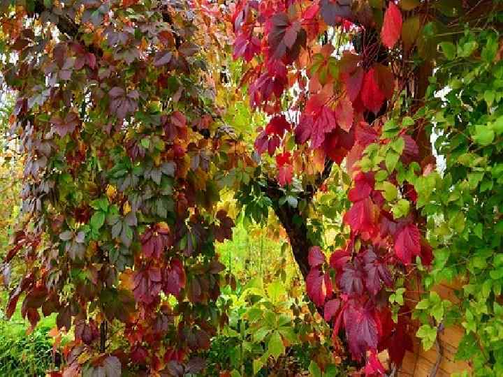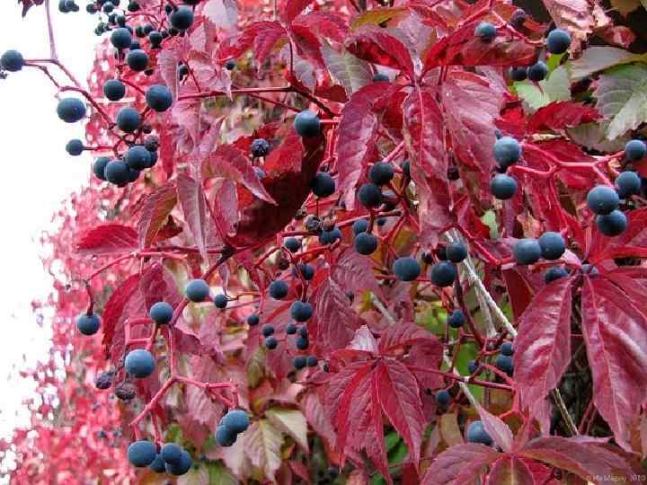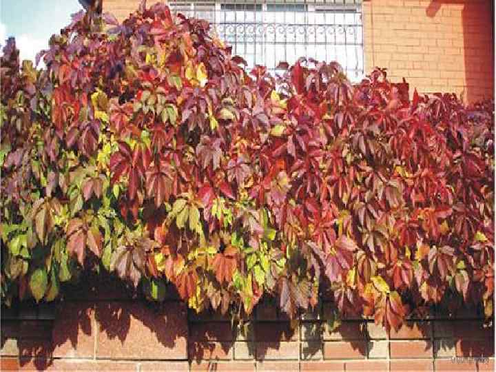 «Виноград девичий пятилисточковый или партеноциссус Parthenocissus quinquefolia (семейство «виноградовые» )» • Эта культурна очень популярна благодаря следующим преимуществам: • Прекрасные декоративные характеристики. • Стойкость к различным видам паразитов. • Отсутствие необходимости химического опыления ввиду стойкости к болезням и вредителям. • Ягоды насыщены жирными маслами, известными своим антиоксидантным действием. Они широко применимы в рецептах восточной медицины. • Гипоаллергенность кустарника. • Защита стен построек и изгородей от сырости. • Своеобразный фильтр пыли, газо- и шумозащиты. • Обладает прекрасными фитонцидными свойствами.