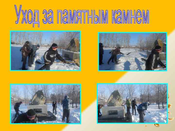 15 Проведение подвижных игр на переменах с учащимися младших классов. 16 Операция «Творим добро своими руками» (помощь пожилым людям в уборке снега ) 17 Акция «Щедрая палитра ветерана» (классные часы с приглашением ветеранов Великой Отечественной войны) 18 Агитбригада «Согнём шутить нельзя!» , издание стенгазеты. 19 Праздничное поздравление сверстников «Пришла весна» 20 Беседа. Традиции моей семьи. 21 Беседа. Вода – забота общая. 22 Акция «Мы чистим мир» - борьба с вредными привычками. 23 Акция «Дом, в котором я живу» (благоустройство дворов) 24 Беседа. Дорогою добра и милосердия. 25 Ветеран живет рядом. ( приглашение тружеников тыла, ветеранов) 26 Акция «Почта Победы» 27 Акция «Круговая порука добра» (сбор гуманитарной помощи детям из многодетных, малообеспеченных семей и семей, попавших в трудную жизненную ситуацию) 28 Подведение итогов работы