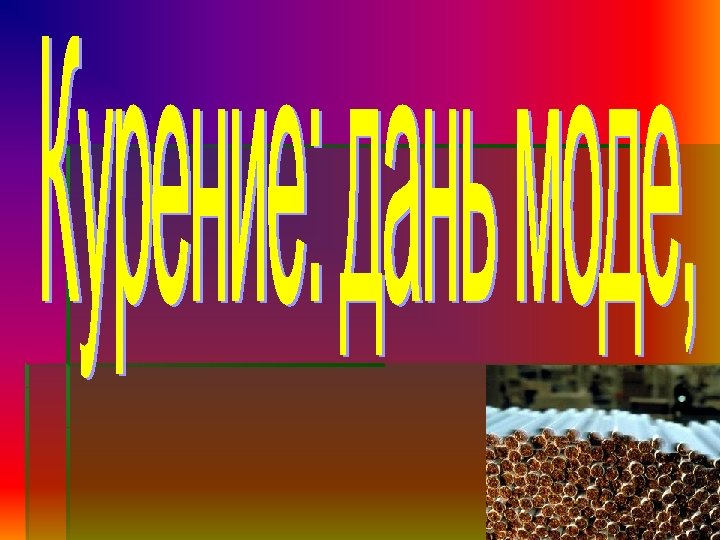 § В подростковой среде курит каждый второй мальчик и каждая четвёртая девушка § Почему курят подростки? § Любопытство, дурная компания, реклама, § стремление стать взрослым, самостоятельным, § перед глазами пример родителей или родственников с сигаретой в руках.