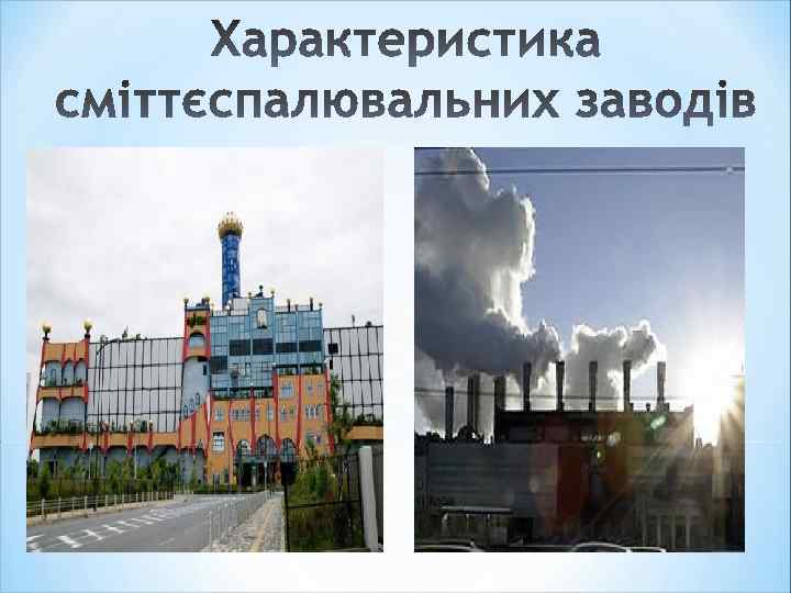 1. Сміттєспалювальні заводи: на Заході та в Україні. 2. Сміттєспалювання: переваги та недоліки. 3. Склад відходів сміттєспалювання 4. Вплив сміттєспалювальних заводів на середовище та здоров’я людини.