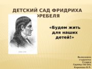 З ЭТАП: ЗАКЛЮЧИТЕЛЬНЫЙ Мероприятия, действия Сроки Участники Собрание с родителями по теме "О здоровье всерьез": *Роль закаливающих мероприятий в снижении заболеваемости детей. Сельский врач *Практикум с родителями "Методы саморегуляции" Разработка, размножение и распространение памяток "Режим дня и его значение для здоровья ребенка", "Культура приема пищи", "Семь великих и обязательных "НЕ" Обмен опытом с педагогами ДОУ Участие в презентации. Итоговое мероприятие проекта: «За здоровьем в детский сад» . март Родители, специалисты ДО, сельский врач апрель Воспитатели Ожидаемый результат, продукт деятельности Повышение психологопедагогической компетентности родителей Рекомендации, памятки Май – Педагоги ДОУ Повышение компетентности педагогичес педагогов в вопросах здоровье кий совет сбережения дошкольников Май Готовят презентацию «За здоровьем в детский сад» .