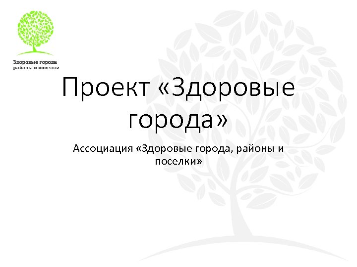 Проект «Здоровые города» Ассоциация «Здоровые города, районы и поселки»