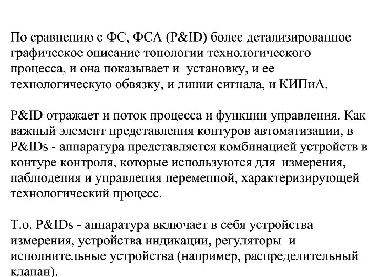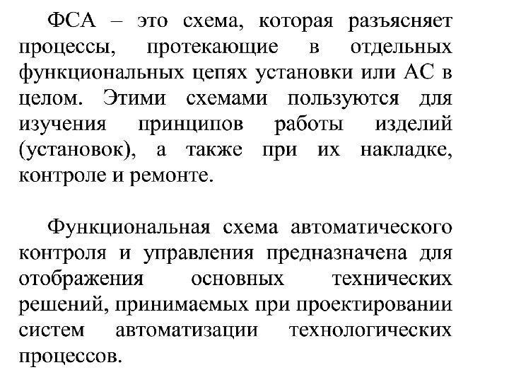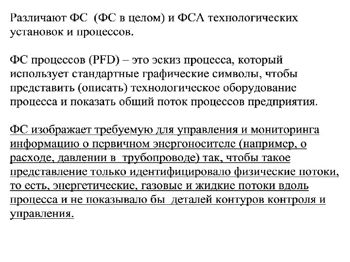 Разработка ФСА начинается с выбора: • Контролируемых параметров ТП • Сигнализирующих параметров ТП • Регулирующих параметров ТП Исходный необходимый и достаточный объем КИПи. А определяется в процессе определения степени свободы