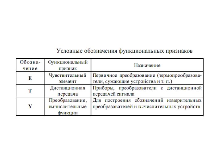 Условные графические обозначения приборов обозначения по ГОСТ 21. 208 и 21. 404 – 2013 XYZ шрифт по ГОСТ 2. 304 Q толщина линий по ГОСТ 2. 303 Х – основное значение измеряемой величины Y – дополнительное обозначение измеряемой величины Z – функциональные признаки прибора Q – позиционное значение прибора
