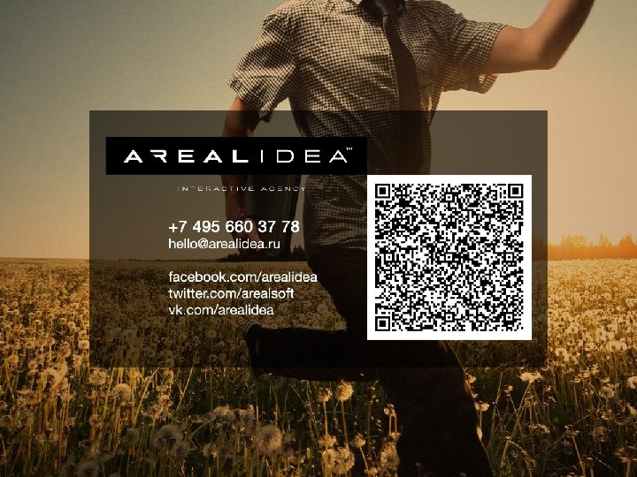 AREALIDEA 7 направлений деятельности § Повышение продаж и конверсии стратегия, аудит, сопровождение, управление кампаниями, безопасность § Электронная коммерция разработка розничных и оптовых магазинов, торговых систем, сайтов § Корпоративные электронные системы разработка и внедрение корпоративных порталов, внутренних систем, CRM § Комплексное продвижение в интернете поисковое продвижение за результат, множество каналов маркетинга § Мобильные решения и технологии решения для торговли, дополненная реальность, геонавигация § Разработка и реализация digital-концепций промо и мотивационные программы, production § Собственные продукты и сервисы