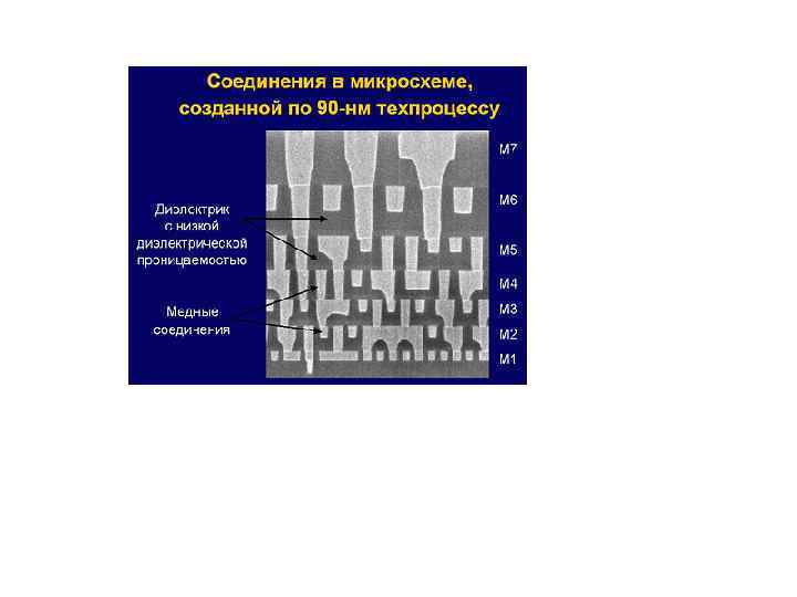 Проблемы при миниатюризации межсоединений Роль задержки в линиях разводки неуклонно растет: 1) до 90 -х гг. доминировали задержки в самом транзисторе 2) в настоящее время (60… 90 нм) времена задержки в приборах составляют ~ 1 пс; 1 мм линии ~ 6 пс 3) в 2015 (22 нм) ожидаются значения 0, 1 пс в приборе и ~ 30 пс на 1 мм линии межсоединения Способом уменьшения RC задержки в линиях межсоединений является использование изоляторов с низким значением диэлектрической проницаемости (low-K insulators) изолирующих слоев, на которую положена линия, что позволяет увеличить эффективную скорость распространения сигнала по линии. Желательно, чтобы проницаемость приближалась к единице. В настоящее время изолирующие слои многоуровневой разводки имеют проницаемость от 3, 5 до 2, 6. В десятилетней перспективе ожидается снижение этой величины до уровня < 2. Для этого используются различные полимеры (органические и неорганические) и модифицированные 52 окислы.