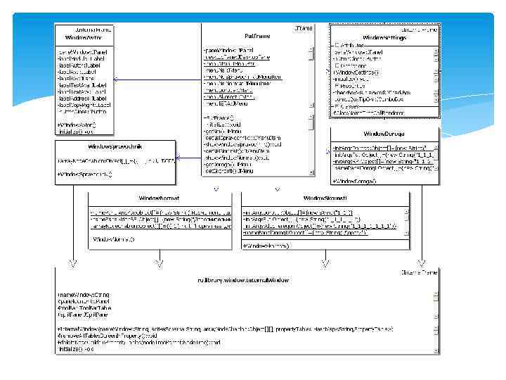 Примеры указания атрибутов Спецификация атрибута в UML Генерируемый код для языка Java +name : String public String name; + pi : double = 3. 1415 {final, static} public final static double pi = 3. 1415; – coordinate. XY : int[][] = {{1, 1}, {2, 4}, {3, 9}} private int[][] coordinate. XY = {{1, 1}, {2, 4}, {3, 9}}; # visible : boolean = true protected boolean visible = true; – connect : Connect. DB = null; private Connect. DB connect = null;