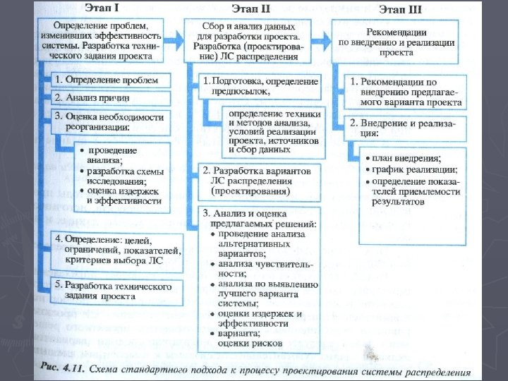 ► Проектированием сети распределения компании занимаются только при продвижении товарных потоков собственными силами. ► Процесс проектирования чаще всего является ответом логистики на предлагаемые маркетингом новые стратегии, затрагивающие изменения в территориальном охвате потребителей, увеличении объемов продаж или политики обслуживания. ► Инициатива проектирования может исходить и от самой логистики при решении об изменении стратегии распределения или если анализ действующей сети показал ее неэффективность. В этом случае речь, как правило, идет о реорганизации существующей сети распределения, которая может быть следствием ряда причин.