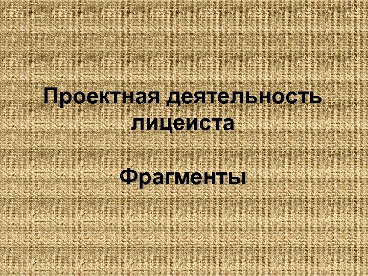 Проектная деятельность лицеиста Фрагменты