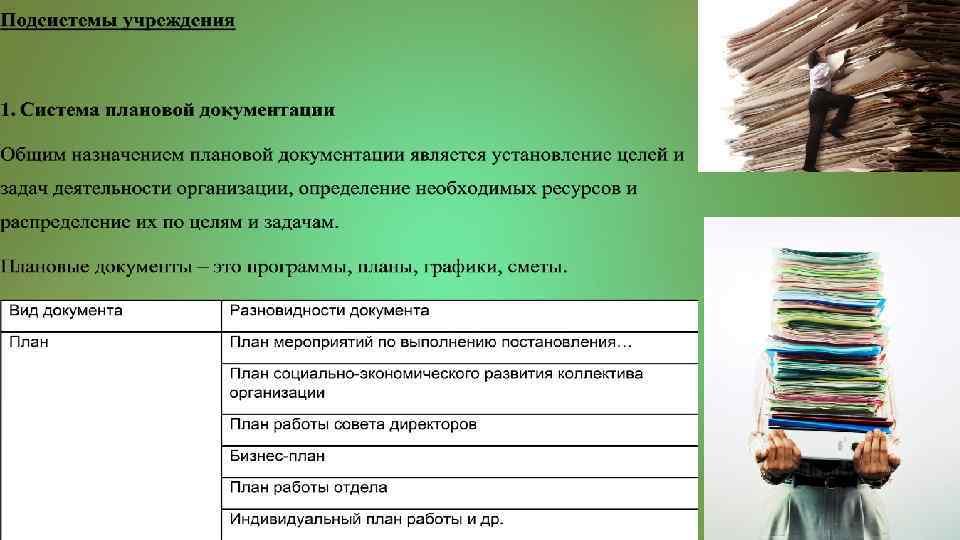 2. Система распорядительной документации Система распорядительных документов призвана регулировать деятельность организации. Регулирование деятельности необходимо для выполнения поставленных задач (программ, планов). Решения, принимаемые в процессе регулирования, фиксируются в документах, составляющих систему распорядительной документации. Это документы следующих видов: постановления, решения, приказы, распоряжения, указания. Распорядительные документы также представлены большим количеством разновидностей документов: Вид документа Разновидности документа Приказ о распределении обязанностей между руководством Приказ о создании филиала (отделения, представительства) Приказ об утверждении (положения, правил, инструкции) Приказ о финансировании работ… Приказ о приеме на работу Приказ о командировании и др.
