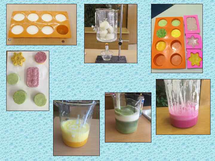 Ход работы 1. Приготовление твердого и жидкого мыла; 2. Изготовления бомбочек для ванн; 3. Изготовления питательного крема.