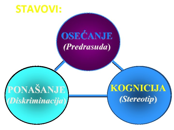 STAVOVI: OSEĆANJE (Predrasuda) PONAŠANJE (Diskriminacija) KOGNICIJA (Stereotip)