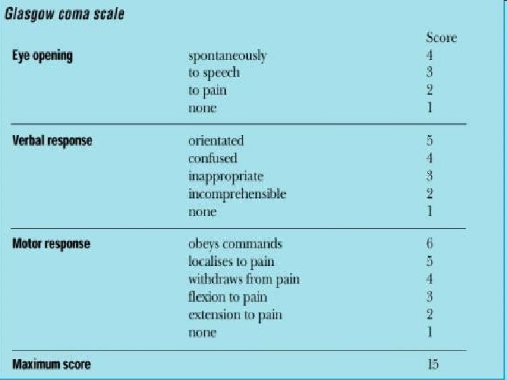 NIH Stroke Scale Score Standardized method measures degree of stroke r/t impairment and change in a patient over time. Helps determine if degree of disability merits treatment with t. PA. As of 2008 stroke patients scoring greater than 4 points can be treated with t. PA. Standardized research tool to compare efficacy stroke treatments and rehabilitation interventions. Measures several aspects of brain function, including consciousness, vision, sensation, movement, speech, and language not measured by Glasgow coma scale. Current NIH Stroke Score guidelines for measuring stroke severity: Points are given for each impairment. 0= no stroke 1 -4= minor stroke 5 -15= moderate stroke 15 -20= moderate/severe stroke 21 -42= severe stroke A maximal score of 42 represents the most severe and devastating stroke.