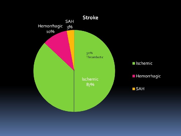 Thrombotic Stroke Occlusion of large cerebral vessel Older population Sleeping/resting Rapid event, but slow progression (usually reach max deficit in 3 days)