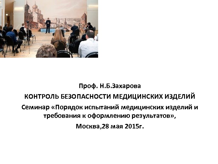Проф. Н. Б. Захарова КОНТРОЛЬ БЕЗОПАСНОСТИ МЕДИЦИНСКИХ ИЗДЕЛИЙ Семинар «Порядок испытаний медицинских изделий и требования к оформлению результатов» , Москва, 28 мая 2015 г.